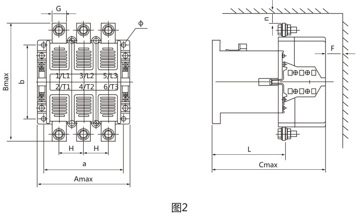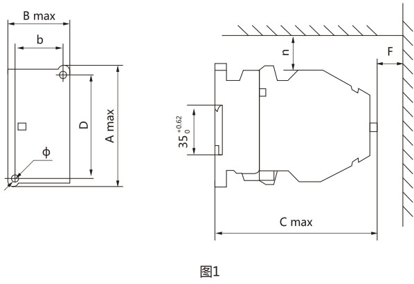 ● 安裝條件:接觸器的安裝面與垂直面的傾斜度不大于±5°。