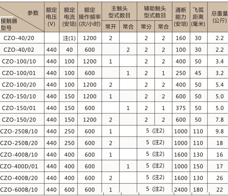 注:⑴額定電流為40A的接觸器用于控制小電流回路時,威倫為了保證可靠滅弧,其滅弧線圈份1.5、2.5、5、10、20及40安培六種供選擇。