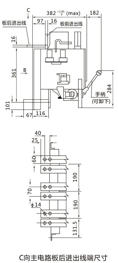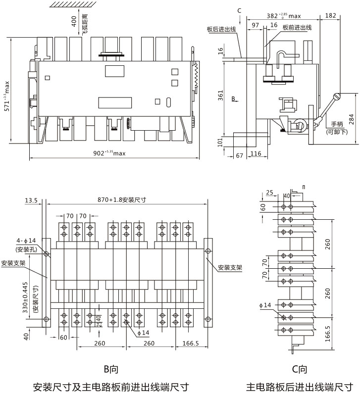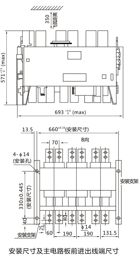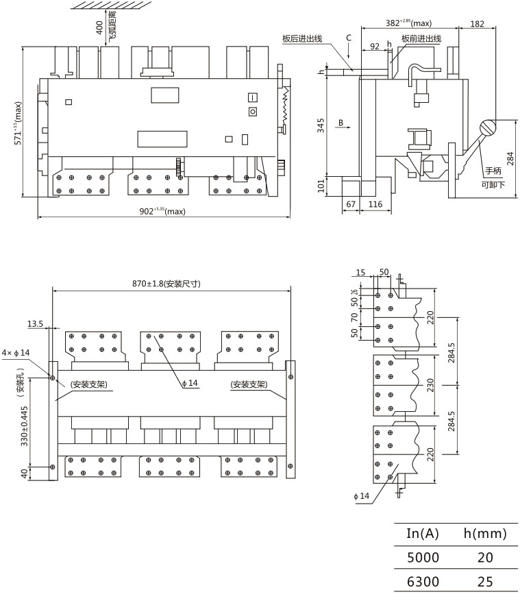 DW15-4000斷路器外形尺寸及安裝尺寸