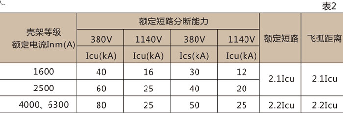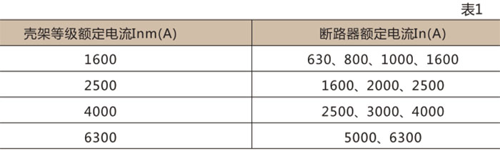 注:只具有瞬時過電流脫扣器的斷路器,并僅作過載保護。In=5000、6300A 只有電磁式,其余均有電磁式和熱電磁式兩種。