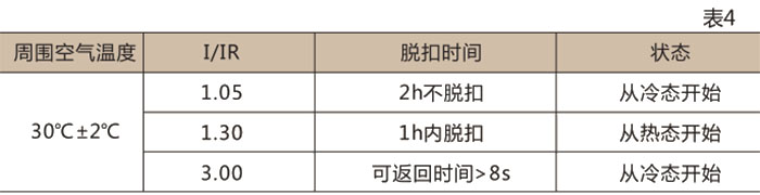 長延時過電流脫扣器各極同時通電時的動作特性見表4