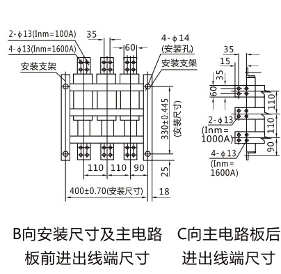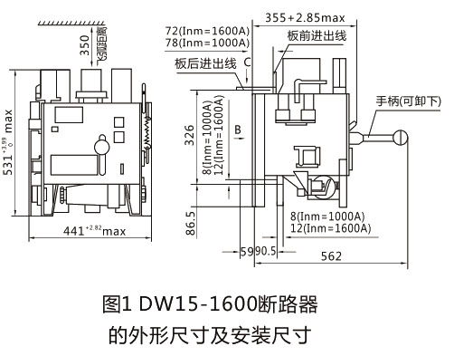 ● DW15-1600斷路器外形尺寸及安裝尺寸