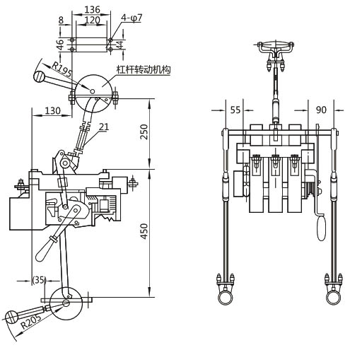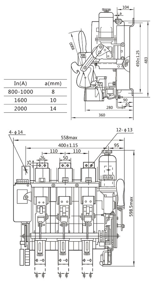 DW15-2000直接手動操作和電動機操作外形及安裝尺寸