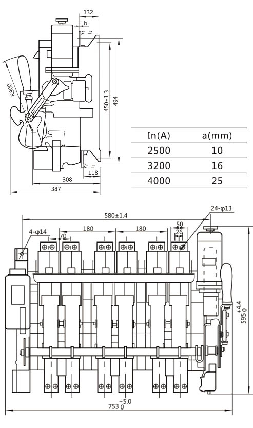 DW15-630直接手動操作和電動機操作外形及安裝尺寸