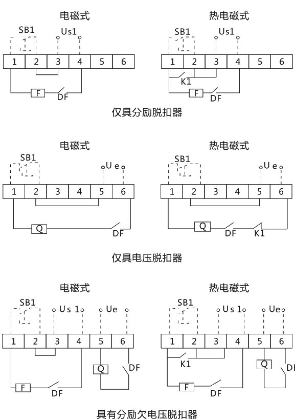 • c.帶過電流脫扣器、分勵脫扣器和欠電壓脫扣器;