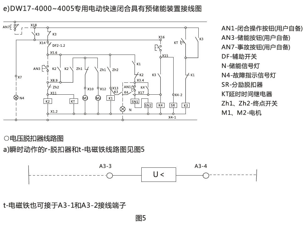 d)電動(dòng)機(jī)預(yù)儲(chǔ)能帶釋能直流操作(附su控制裝置)控制線路圖見(jiàn)圖4a),用戶接線(見(jiàn)圖4b)