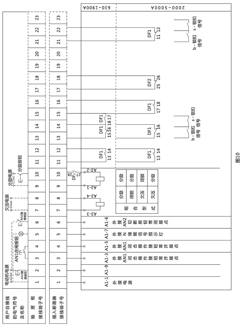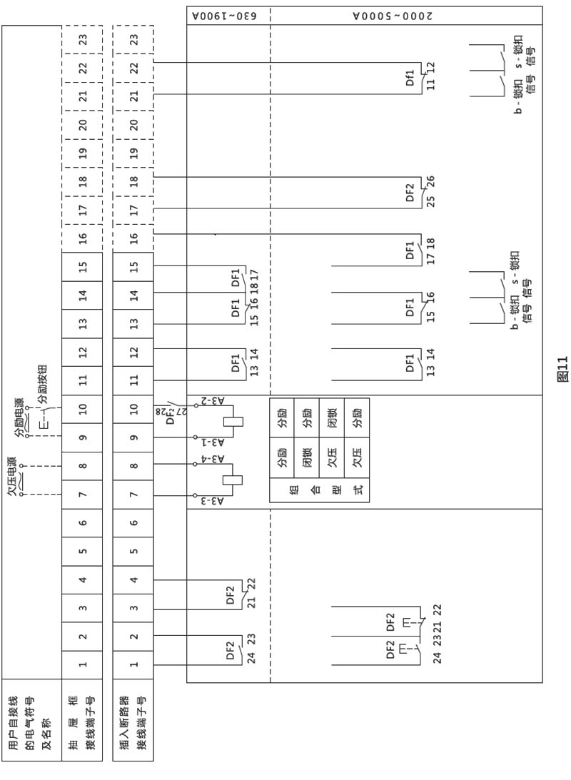 1、端子號(hào)7-8,9-10,欠壓脫扣器及閉鎖電磁鐵出廠時(shí)不串接DF動(dòng)合接點(diǎn)。