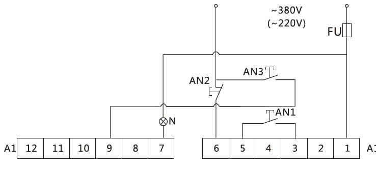 注:如要選用R-脫扣器進(jìn)行斷路器的分閘操作可加接AN4按鈕(訂貨時(shí)需注明)如圖