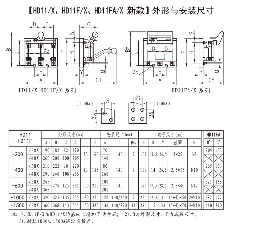 規(guī)型號有:HD11-200/38,HD11-400/38,HD11-600/38,HD11F-100/38,HD11F-200/38,HD11F-400/38