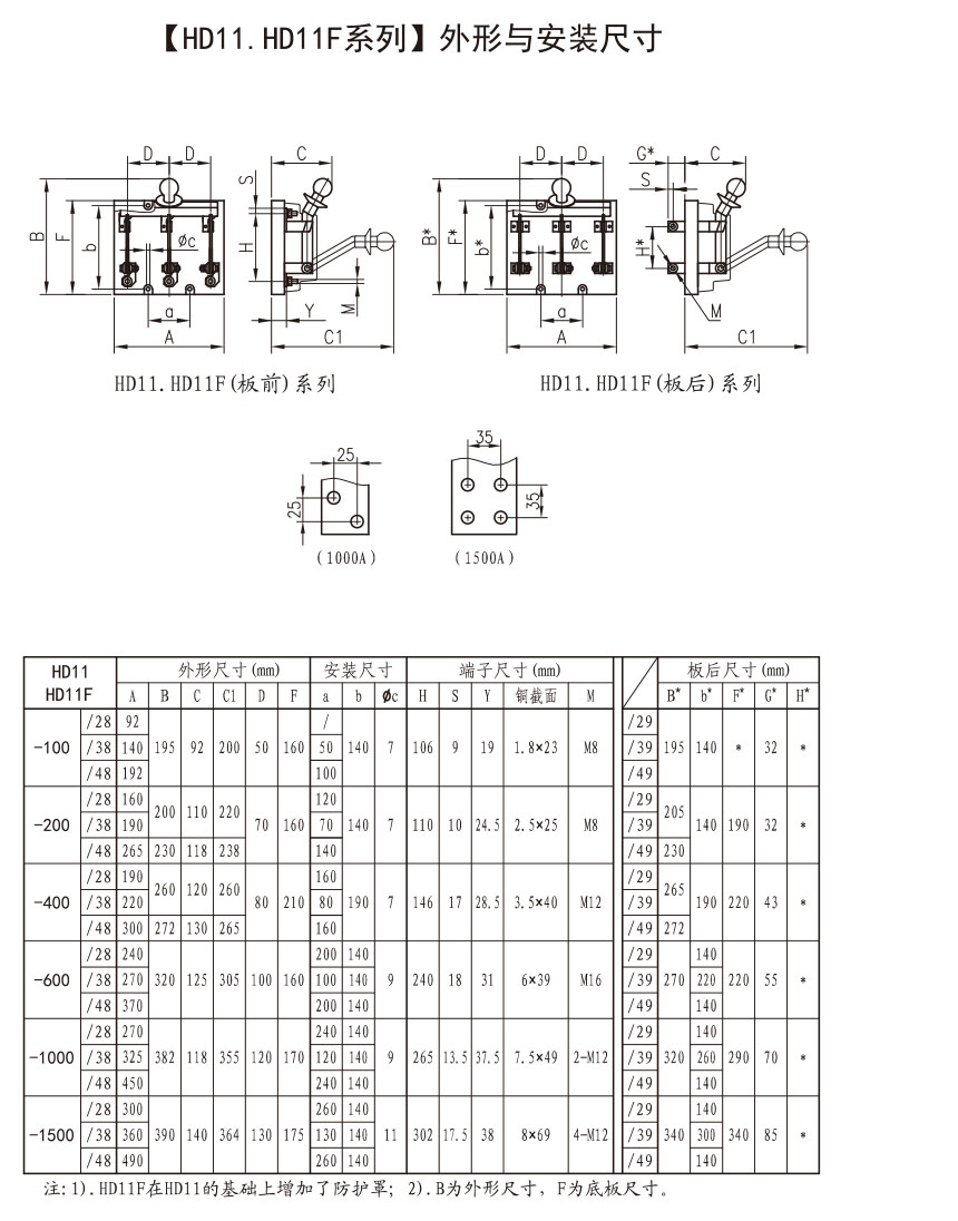 規(guī)型號(hào)有:HD11-200/38,HD11-400/38,HD11-600/38,HD11F-100/38,HD11F-200/38,HD11F-400/38