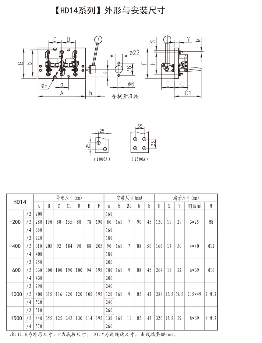 HD14、HS14系列側(cè)面操作手柄式刀開關(guān)主要用于動力箱中。