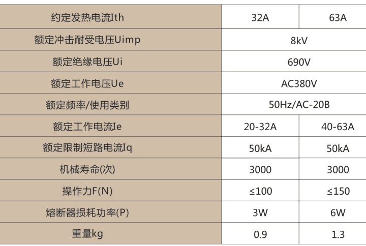 注:當隔離器用于電動機電路時,允許熔斷體的額定電流大于隔離器的額定工作電流。