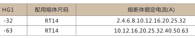 ● 隔離器與熔斷體的配用關系(見下表)