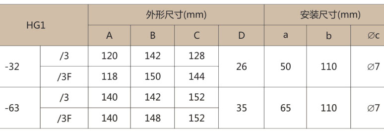 常規(guī)型號:HG1-32/30,HG1-63/30