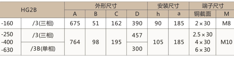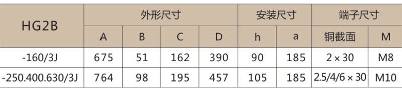 常規(guī)型號:HG2B-160/3R,HG2B-250/3R,HG2B-400/3R,HG2B-630/3R