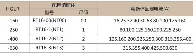 ● 開關(guān)與熔斷體的配用關(guān)系(見(jiàn)下表)