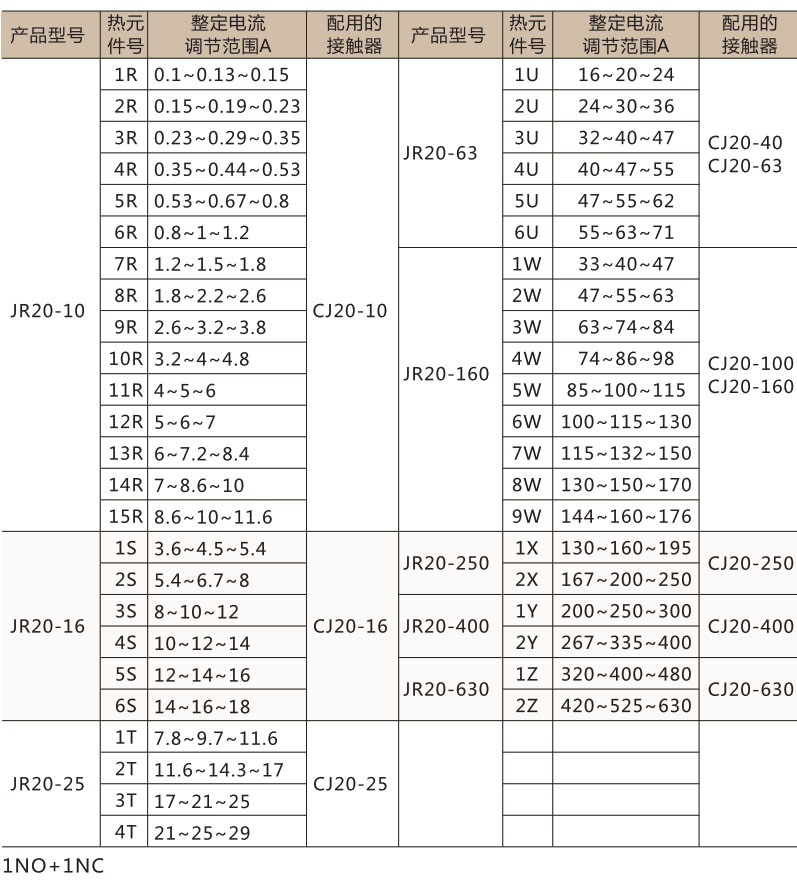 常規(guī)型號(hào):JR20-10L,JR20-16L,JR20-25