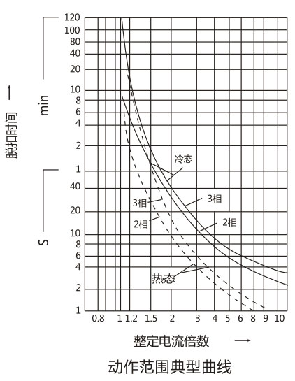 ● 熱繼電器的脫口級(jí)別為10級(jí),其動(dòng)作范圍典型曲線