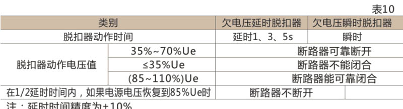 2.分勵(lì)脫扣器的可靠動作電壓范圍為70%-110%,合閘電磁鐵和操作機(jī)構(gòu)為85%-110%。