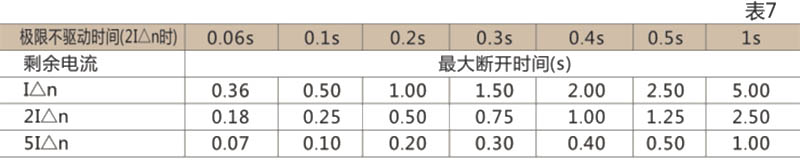 剩余漏電流保護(hù)是通過外接外部漏電互感器來實(shí)現(xiàn)剩余漏電流訊號檢測動作特性為延時(shí)型。其延時(shí)特性符合表7(表中不包括控制器固有動作時(shí)間20ms)