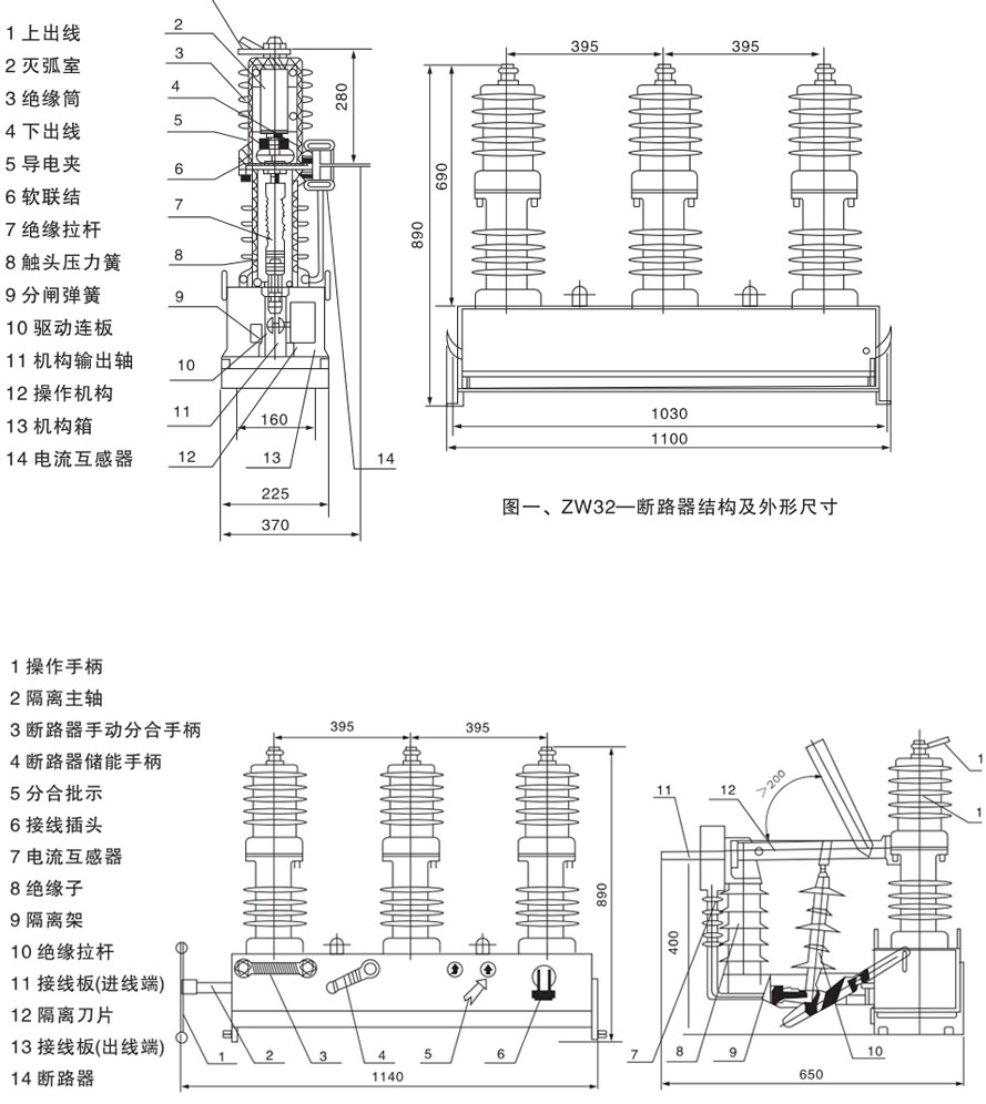 ZW32-24型戶外真空斷路器(以下簡(jiǎn)稱斷路器)為額定電壓24kV,三相交流50Hz的戶外配電設(shè)備。